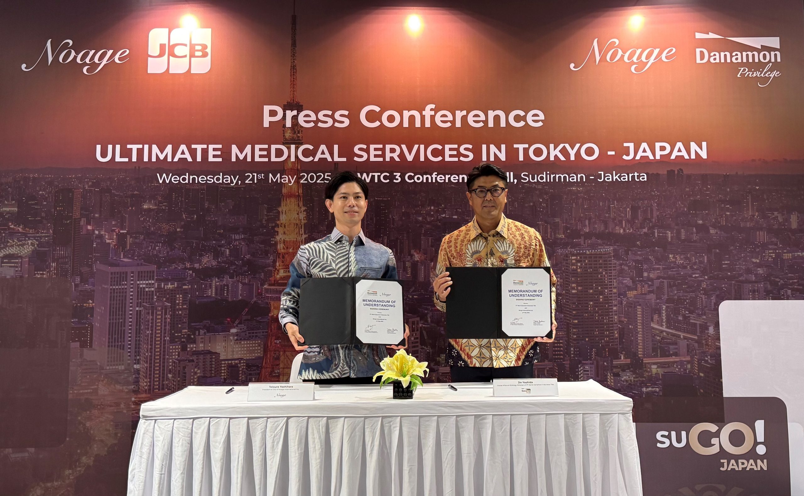 Jakarta, Mynewsindonesia.com-Pasar medis yang luas di dalam negeri menarik perhatian JCB International Co., Ltd (JCB) dan Noage International Inc (NI) bersama mitra strategisnya PT Bank Danamon Indonesia Tbk (“Danamon”) untuk menawarkan layanan medis eksklusif ke Jepang.