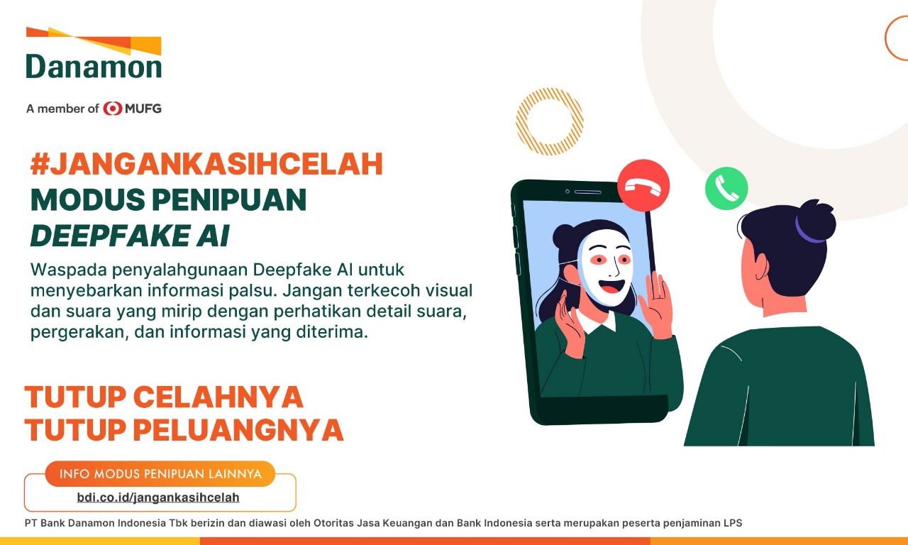 Andreas Kurniawan, Chief Digital Officer Danamon menjelaskan, “Danamon melihat fenomena penipuan berbasis siber ini sebagai tantangan serius yang harus dihadapi bersama. Oleh karena itu, Danamon menyelenggarakan kampanye edukasi #JanganKasihCelah yang bertujuan meningkatkan kesadaran dan kewaspadaan masyarakat terhadap berbagai bentuk penipuan, serta terus dapat memperbarui wawasan mereka akan trend modus yang bermunculan. Salah satu kejahatan siber yang menjadi fokus kami adalah kejahatan siber yang menggunakan teknologi AI, seperti melalui penggunaan teknik deepfake yang dapat mengelabui nasabah. Kampanye #JanganKasihCelah ini menjadi bagian dari upaya Danamon untuk melindungi nasabah dari ragam potensi kerugian yang dapat terjadi akibat penipuan tersebut.”